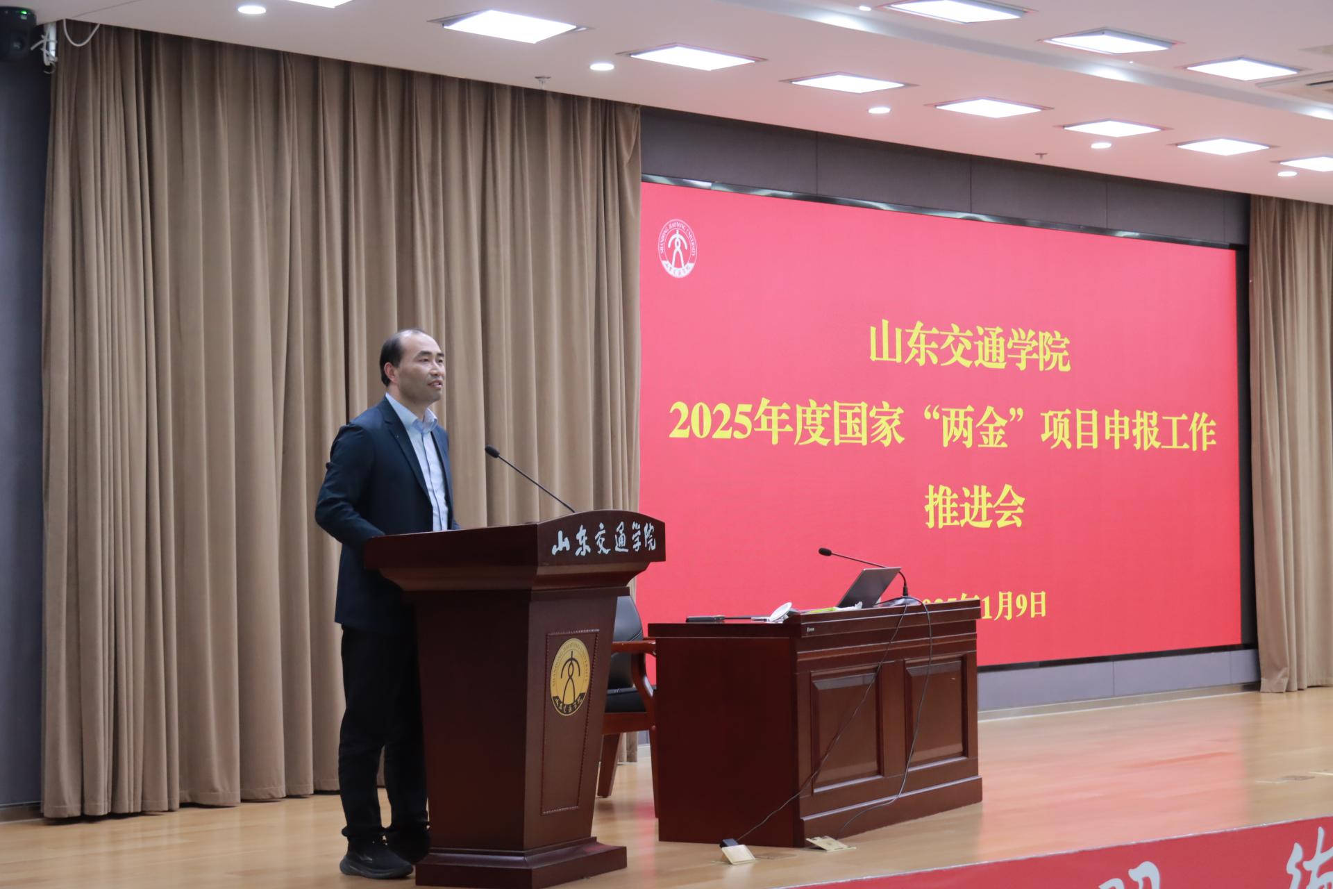 1月9日下午,学校在长清校区明德楼101报告厅召开2025年度国家“两金”项目申报工作推进会议。党委副书记、院长孔伟金,党委委员、副院长李秀领出席。会议由李秀领主持。