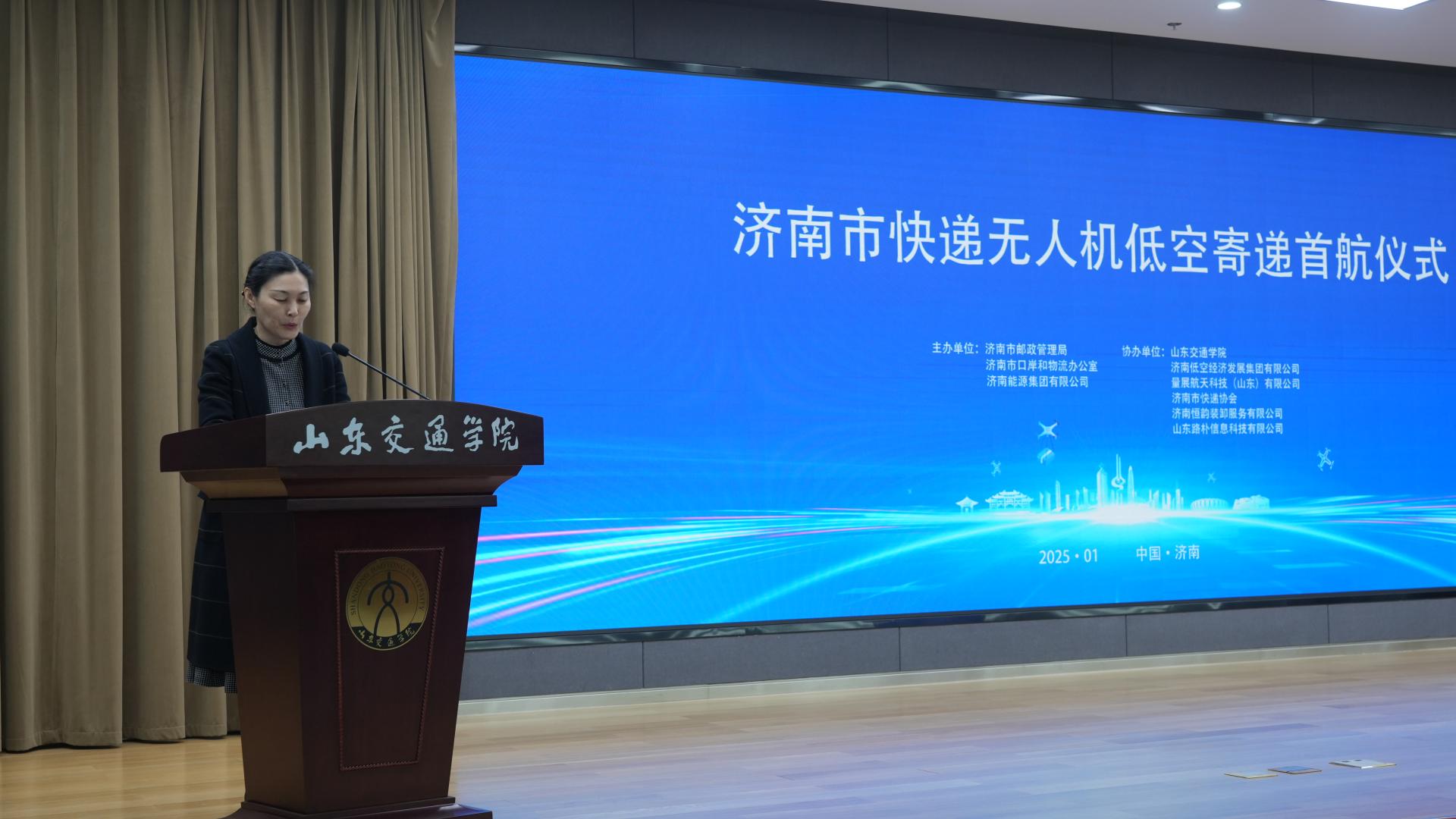 近日,济南低空经济应用场景率先在快递物流行业先行先试,无人机低空寄递首航仪式在我校长清校区成功举办。济南市邮政管理局党组书记、局长韦德忠,济南市口岸和物流办公室二级巡视员黄杰,我校党委委员、副院长徐静等出席。仪式由济南市邮政管理局党组成员、二级调研员宋克建主持。