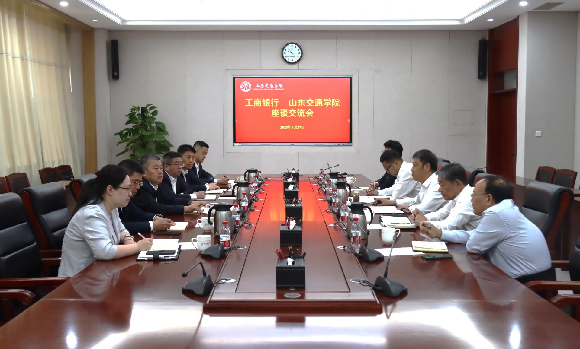 会上,双方围绕银校合作、资金支持、教职工理财等议题展开深入交流,明确未来合作方向。工商银行济南分行人力资源部、机构业务部及槐荫支行代表,与学校财务处、产教融合办公室等部门负责人就合作细节深入对接。与会人员一致表示,将以务实行动推动合作成果惠及师生、服务社会。