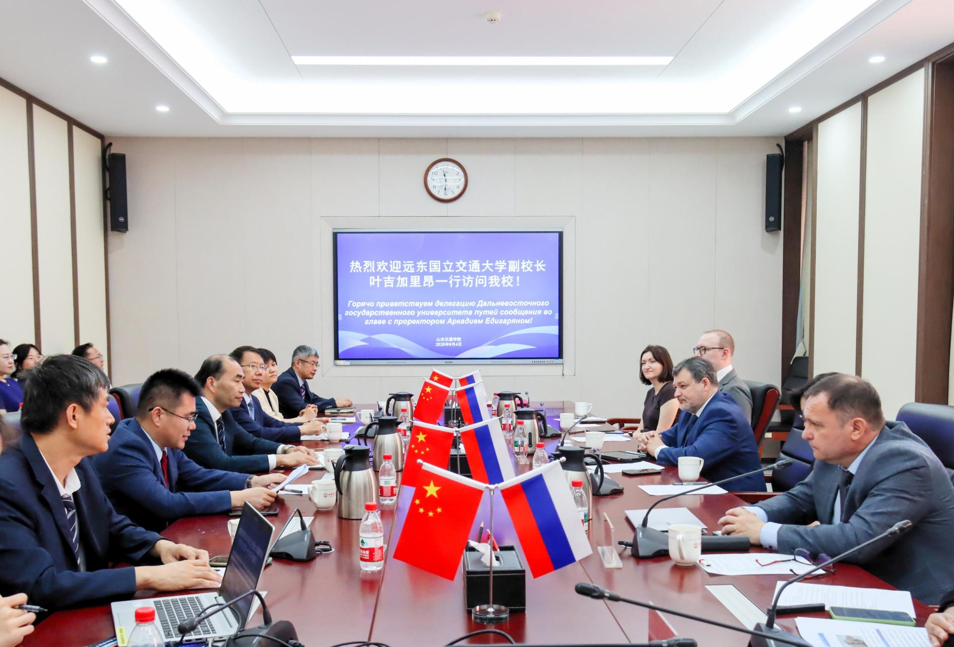 孔伟金对代表团的到访表示热烈欢迎。他简要介绍了学校的基本情况和办学特色,回顾了与远东国立交通大学的教育合作经历。他表示,山东交通学院与俄罗斯远东国立交通大学同为以培养综合交通人才为特色的高校,两校学科专业设置非常相似,承担着服务交通行业高质量发展的共同使命,希望双方进一步加强在人才培养、交通领域科研合作以及师生互访交流等方面的合作,并积极开拓更多合作空间。