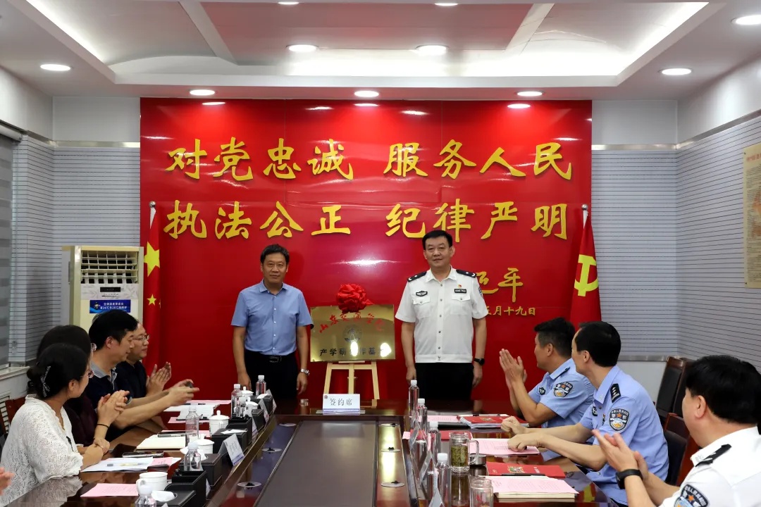 王伟、王君洲共同为“山东交通学院交通法学院产学研合作基地”揭牌。