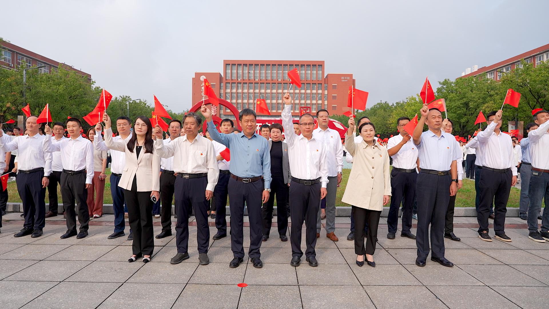 9月28日上午,学校在长清校区东门举行“同升国旗,同唱国歌”主题活动。学校党委领导班子成员王伟、李贞涛、王保群、徐静、王兴盈、刘庆波出席活动。