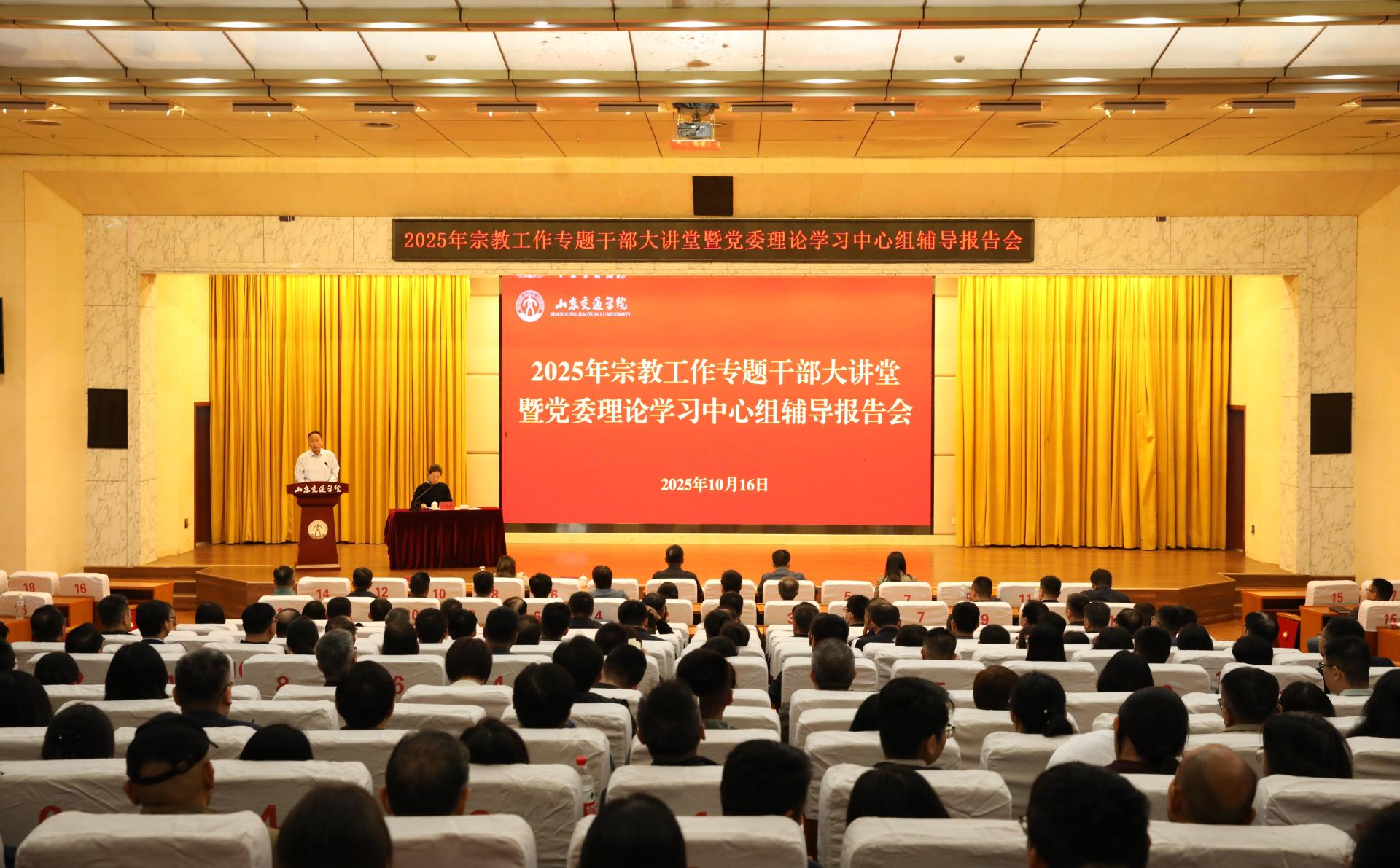 为深入学习贯彻习近平总书记关于宗教工作的重要论述和重要指示批示精神,全面提升学校宗教工作队伍能力水平,10月16日,学校在长清校区学术报告厅举办宗教工作专题干部大讲堂暨党委理论学习中心组辅导报告会。省教育厅(省委教育工委)二级调研员王霄凌应邀作专题辅导报告。学校党委领导班子成员出席。会议由党委委员、党委统战部部长刘庆波主持。