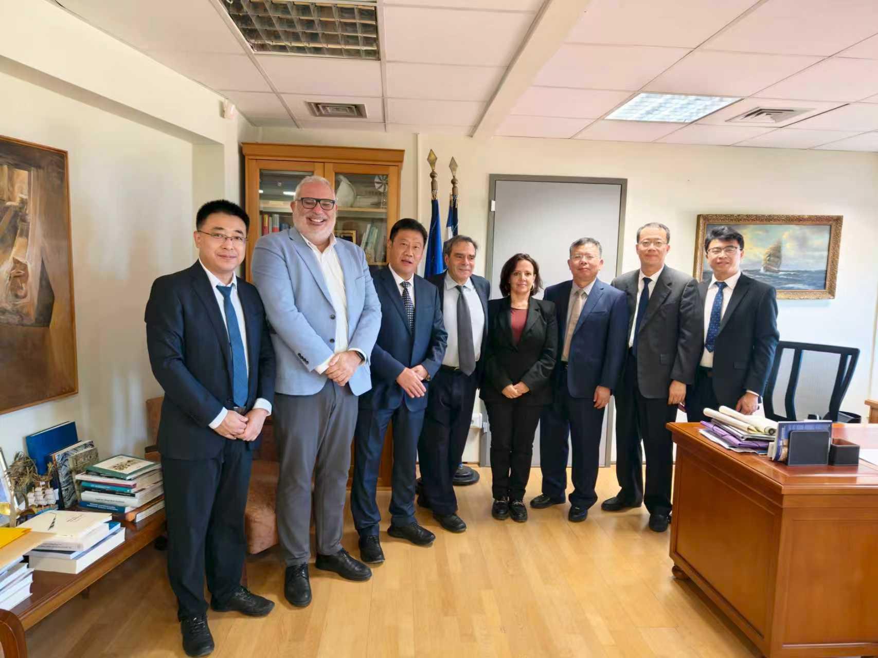 在希腊期间,代表团访问了中国驻希腊大使馆,与公使衔参赞赖波、教育一秘王迎、交通部驻使馆专员张同戌进行座谈,详细了解希腊有关产业结构、中资企业在希投资建设、中希文化交流以及高校合作情况。双方一致认为,要充分发挥希腊在远洋运输、船舶制造、港口物流等方面的优势,深化中国(山东)-中东欧国家科教产融汇发展中心建设,广泛汇聚中希教育、科技、产业资源,努力实现互利共赢、持续发展。