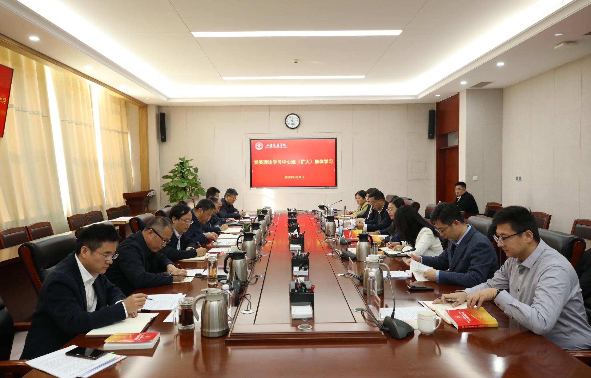 11月21日,学校党委理论学习中心组在长清校区明德楼303会议室进行集体学习,学习党的二十届四中全会精神和《中国共产党思想政治工作条例》。