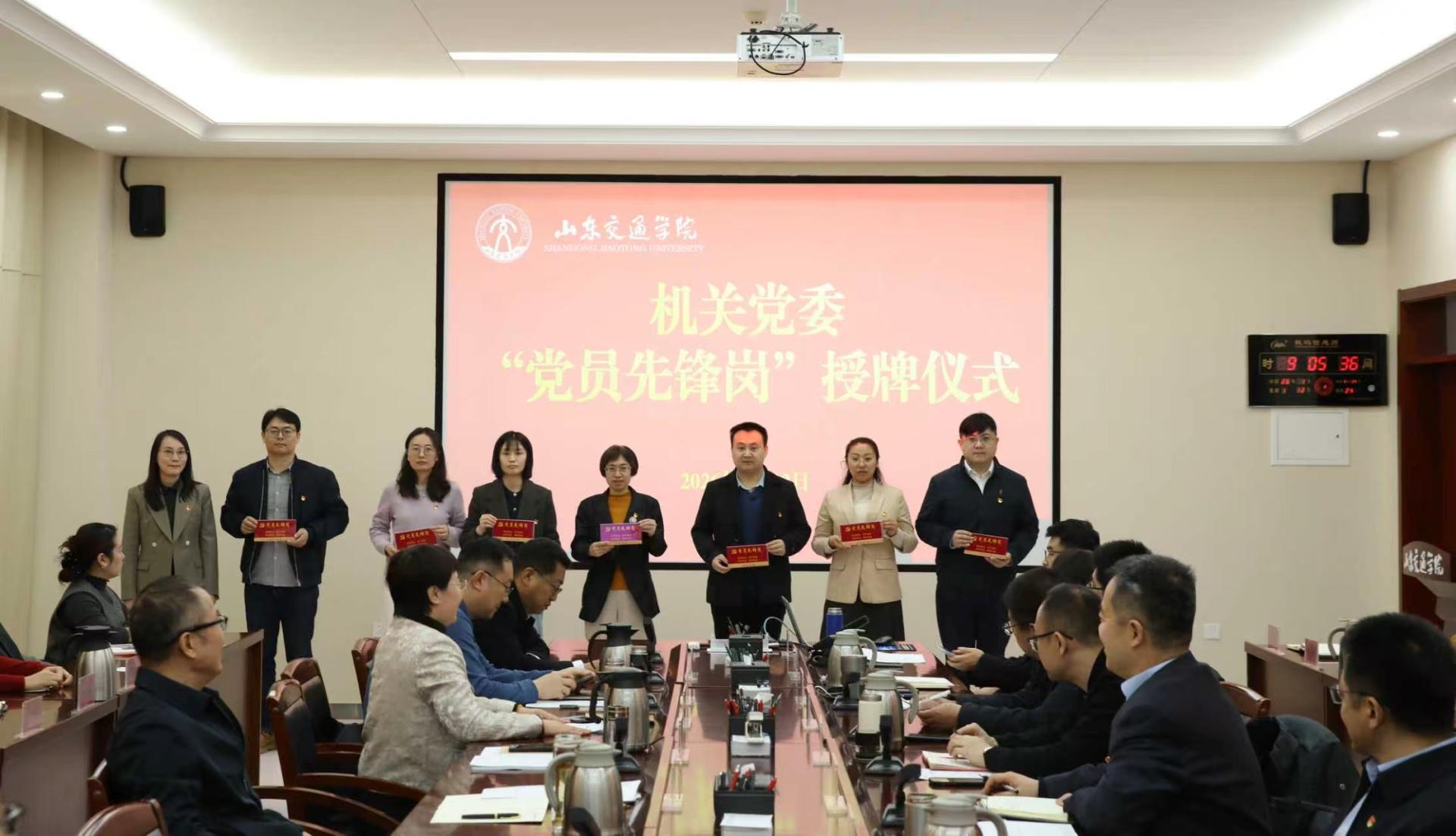 1月12日上午,机关党委“党员先锋岗”授牌仪式在长清校区明德楼301会议室举行。学校党委副书记李贞涛,学校党委委员、党委组织部部长王兴盈出席。
