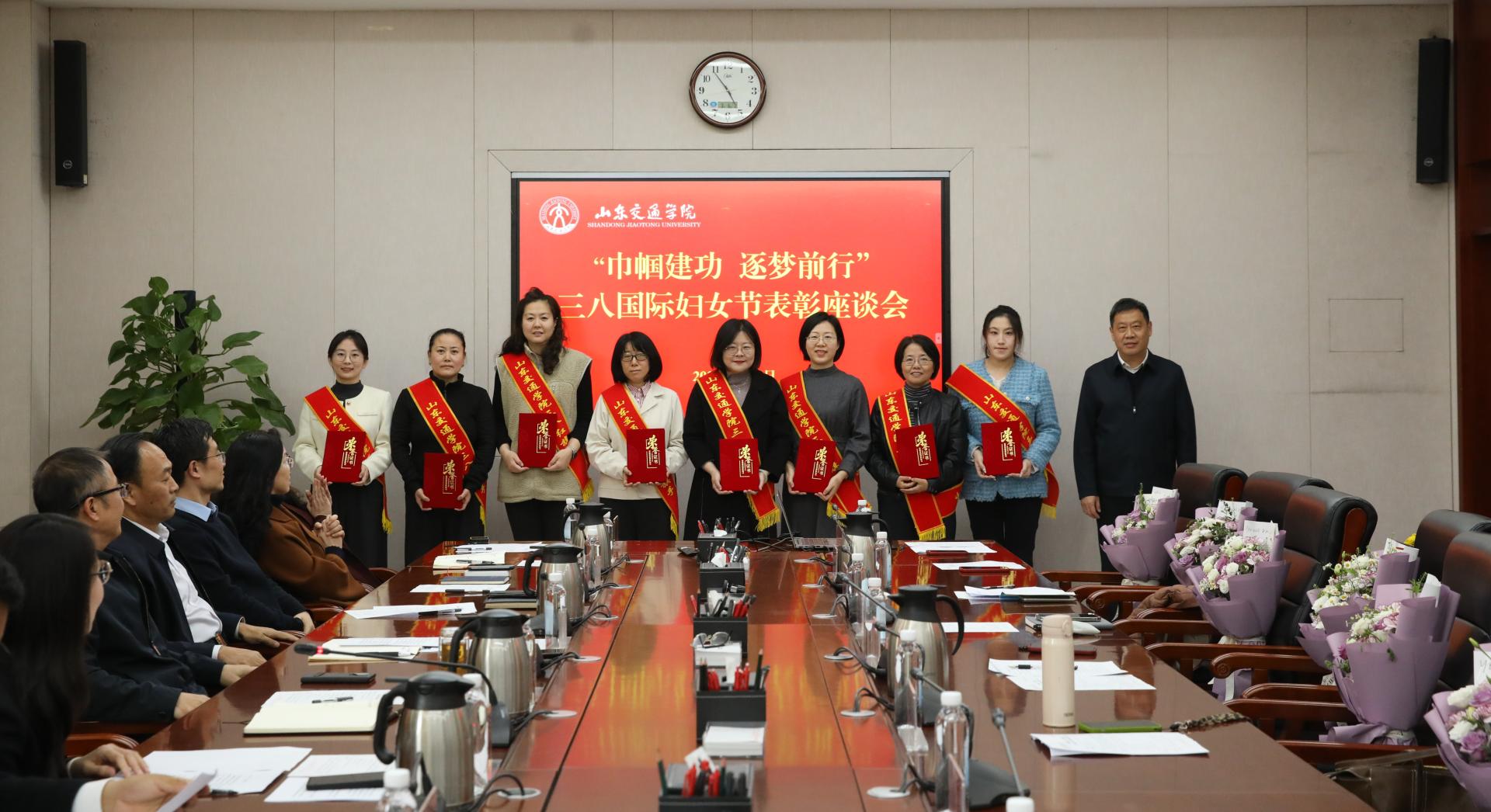 3月6日下午,在第116个“三八”国际妇女节来临之际,学校在长清校区明德楼303会议室召开“巾帼建功 逐梦前行”主题“三八”国际妇女节表彰座谈会。学校党委书记王伟,党委副书记李贞涛,党委委员、党委组织部部长王兴盈,党委委员、党委统战部部长刘庆波出席。会议由王兴盈主持。
