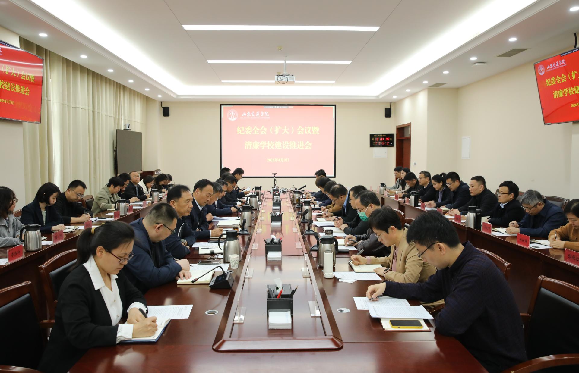 4月9日上午,学校在长清校区明德楼301会议室召开纪委全会(扩大)会议暨清廉学校建设推进会。学校党委书记王伟,党委委员、纪委书记、监察专员刘广东,党委委员、党委宣传部部长刘庆波出席。会议由刘广东主持。